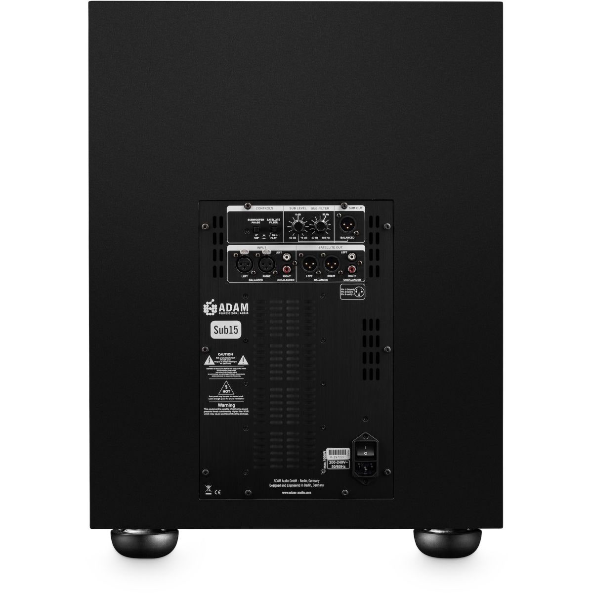 Med hög maximal ljudtrycksnivå och låg distorsion är ADAM Audio Sub15 konstruerad för medelstora till större kontrollrum där exakt återgivning av låg frekvensenergi är en central del av mix- och masteringprocessen.
