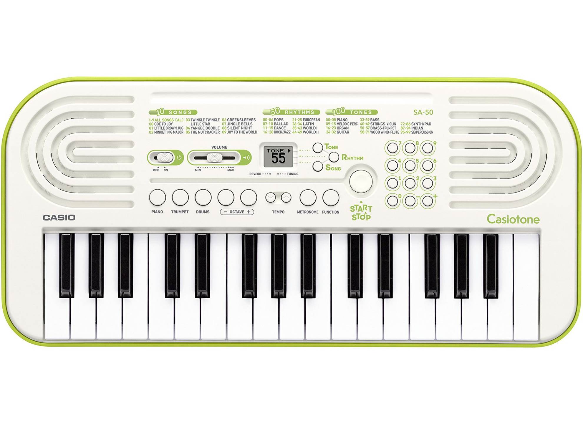 Miljontals människor har sina första musikupplevelser med ett Casiotone-keyboard. För många är det början på en livslång passion, för vissa till och med ett avtryck som senare gör hobbyn till en karriär. Den nya modellen, SA-50, fortsätter CASIOs vision att göra det möjligt för så många som möjligt att aktivt spela musik. De nya modellerna garanterar förbättrat ljud, spelbarhet och uttryck. SA-50 har nya metronom- och reverb-funktioner samt transponerings- och oktavbytesfunktioner.