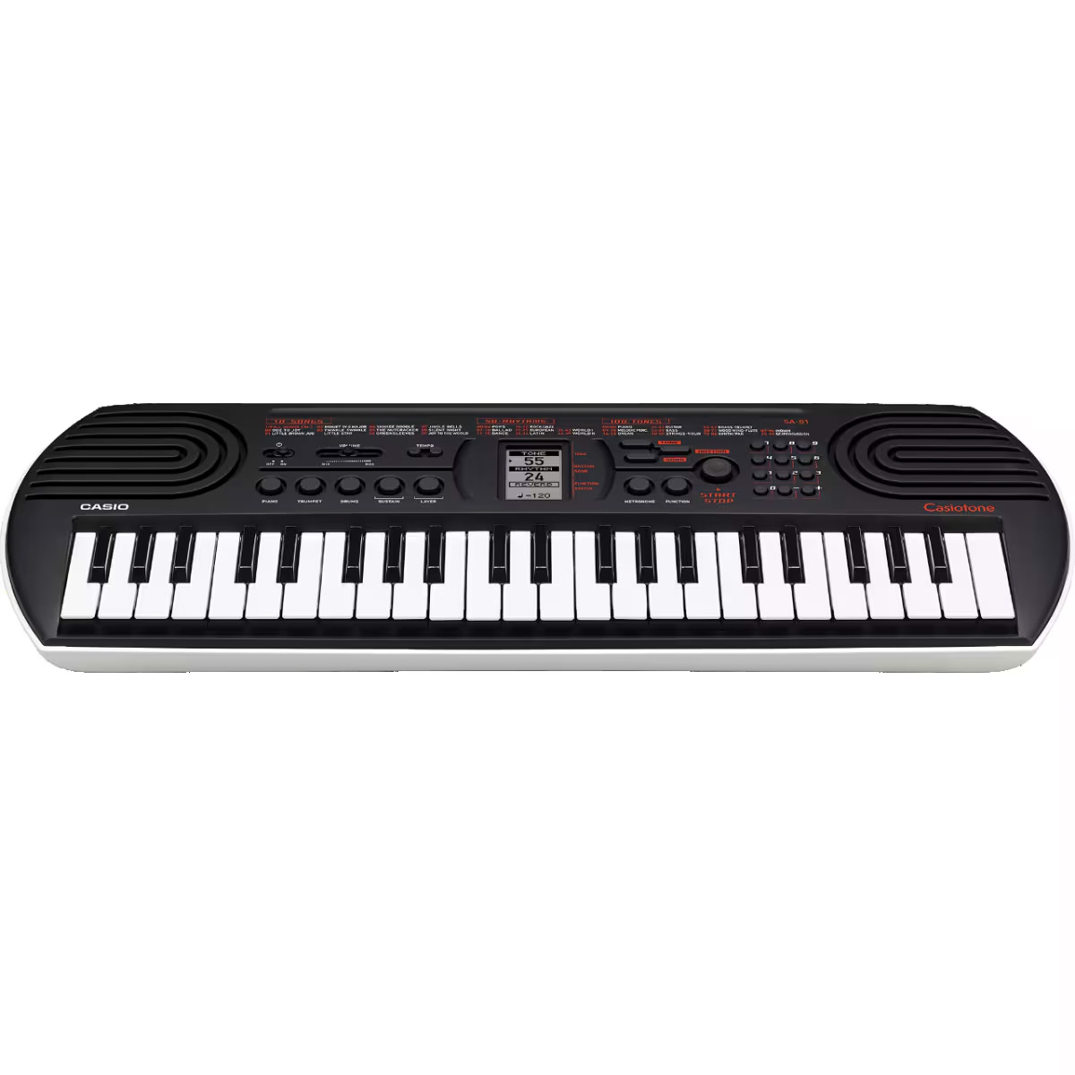 Casio SA-81 är ett portabelt och lättspelat minikeyboard, utformat för att göra det roligt och enkelt för barn och nybörjare att utforska musikens värld. Med 44 små, lättspelade tangenter, 100 klanger, 50 rytmer och 10 inbyggda låtar erbjuder detta instrument en inspirerande introduktion till keyboardspel – samtidigt som det främjar musikalisk utveckling på ett pedagogiskt sätt.