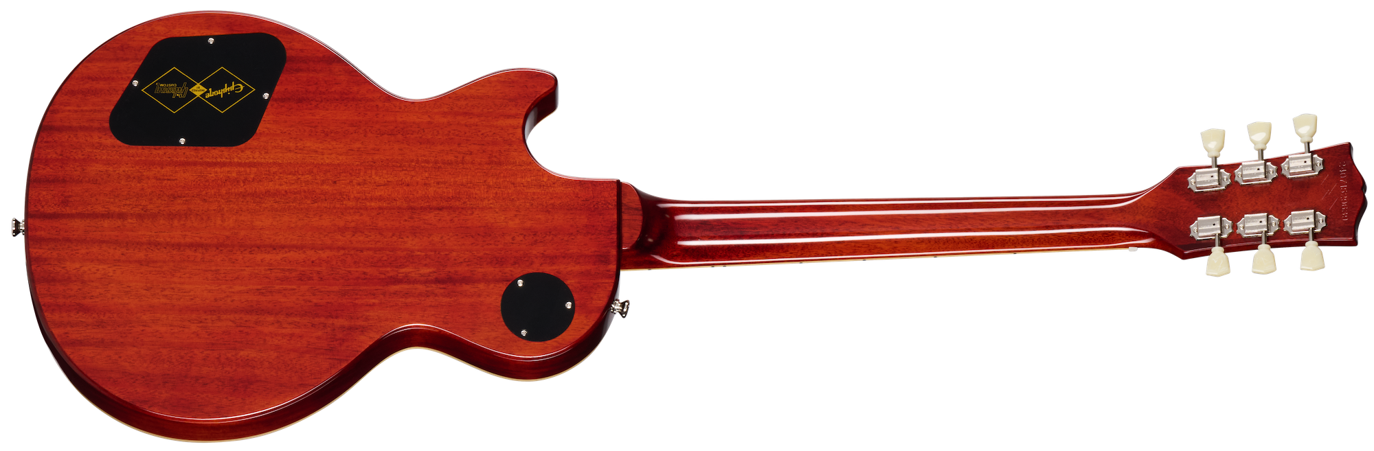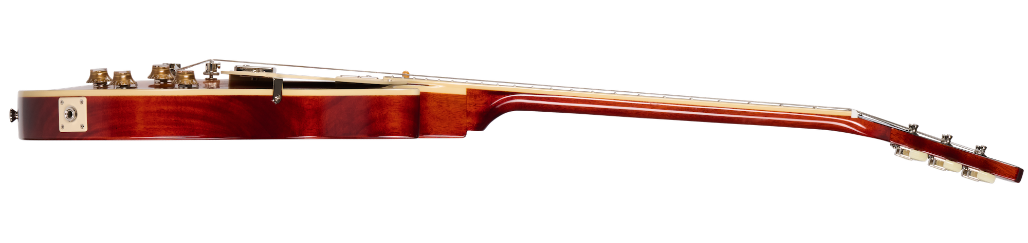 Gitarren är byggd med en tvådelad lönntopp av högsta kvalitet över en solid kropp i ett stycke mahogny, vilket ger en balanserad ton med både sustain och punch. Finishen i Washed Bourbon Burst appliceras i nitrocellulosa med VOS-behandling (Vintage Original Spec) för ett naturligt åldrat utseende som smälter ihop med kroppens kurvor.