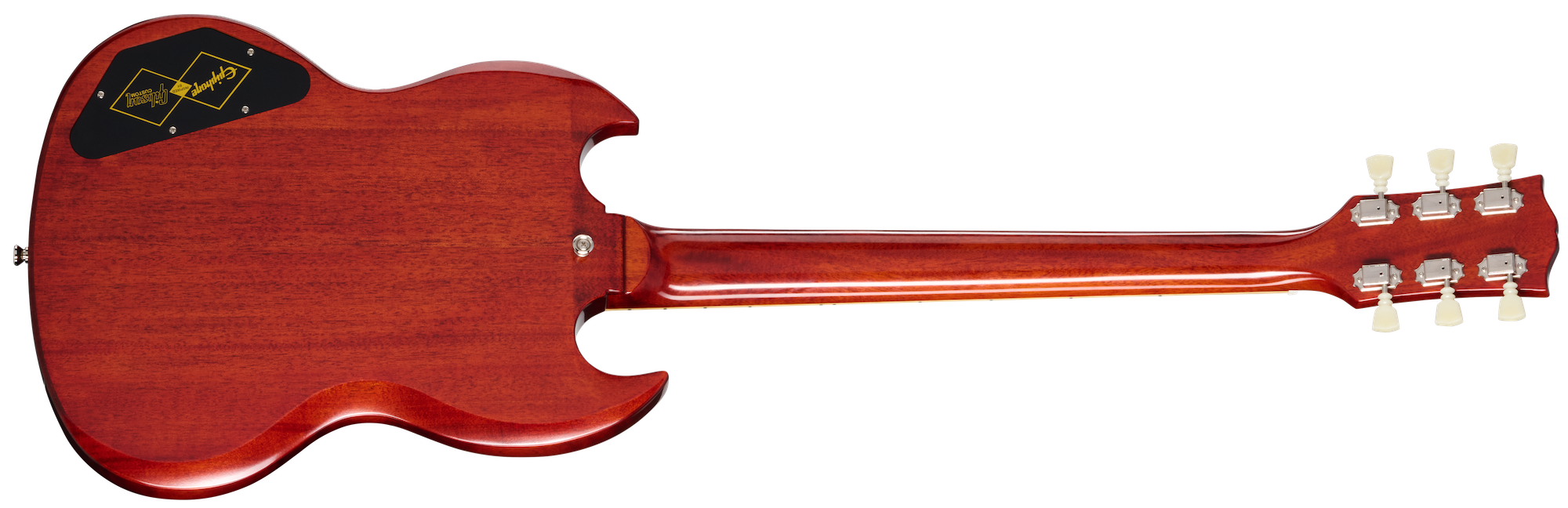 Halsen är limmad i klassisk set-neck-konstruktion och har en “Authentic ’64 Medium C”-profil, vilket ger en bekväm balans mellan vintagekänsla och spelbarhet. Greppbrädan i mörk Indian Rosewood med trapezoidinlägg erbjuder både klassiskt utseende och mjuk respons. Tillsammans med handlindade Custombucker Alnico III-pickuper levererar gitarren ett brett ljudspektrum – från klara clean-toner till fet, responsiv overdrive med klassisk SG-karaktär.