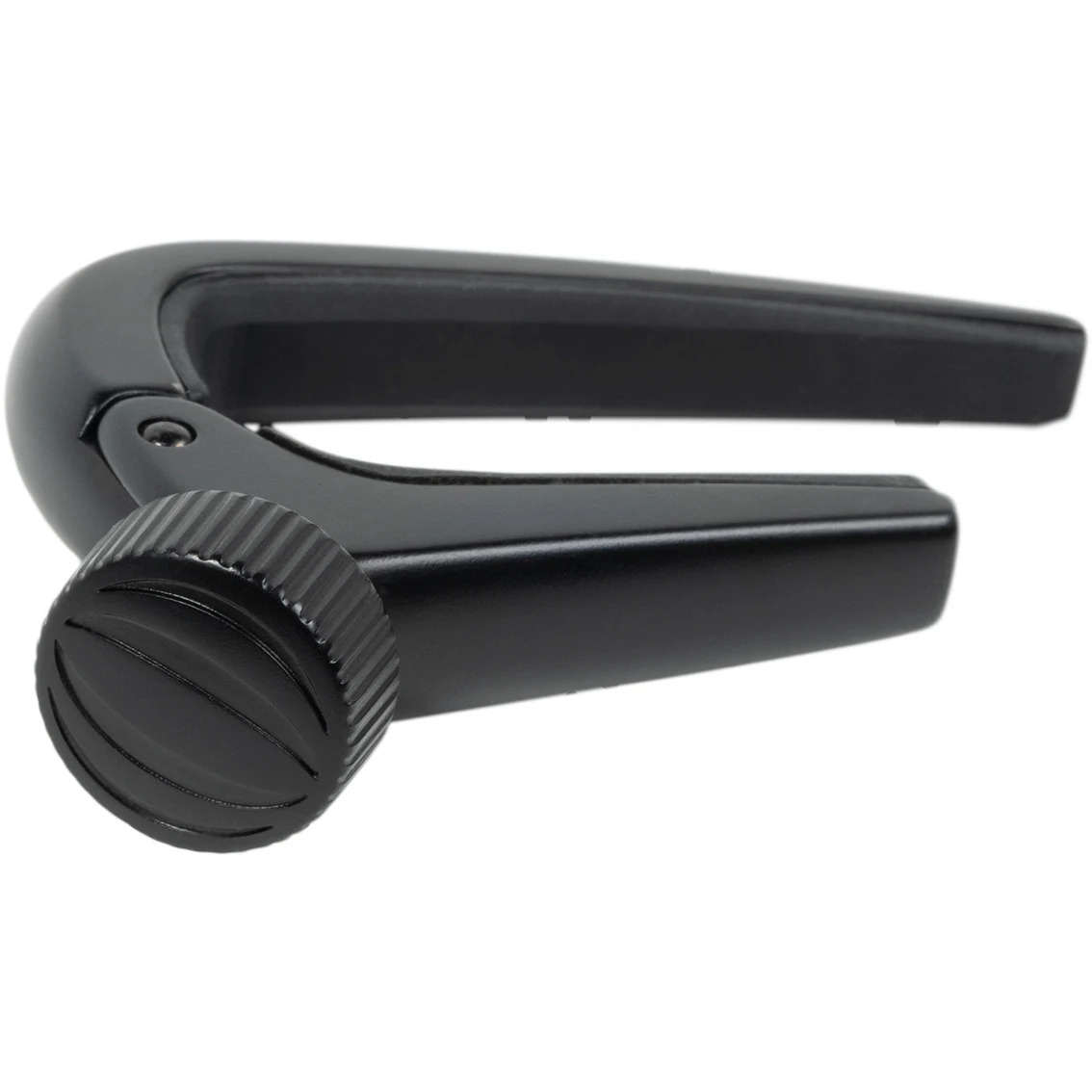 Capo med justerbart strängtryck för både 6- och 7-strängade gitarrer, byggt för stabil stämning och jämnt tryck över alla strängar. Den svarta, slimmade konstruktionen är lätt, skyddande och enkel att använda i alla spelsituationer.