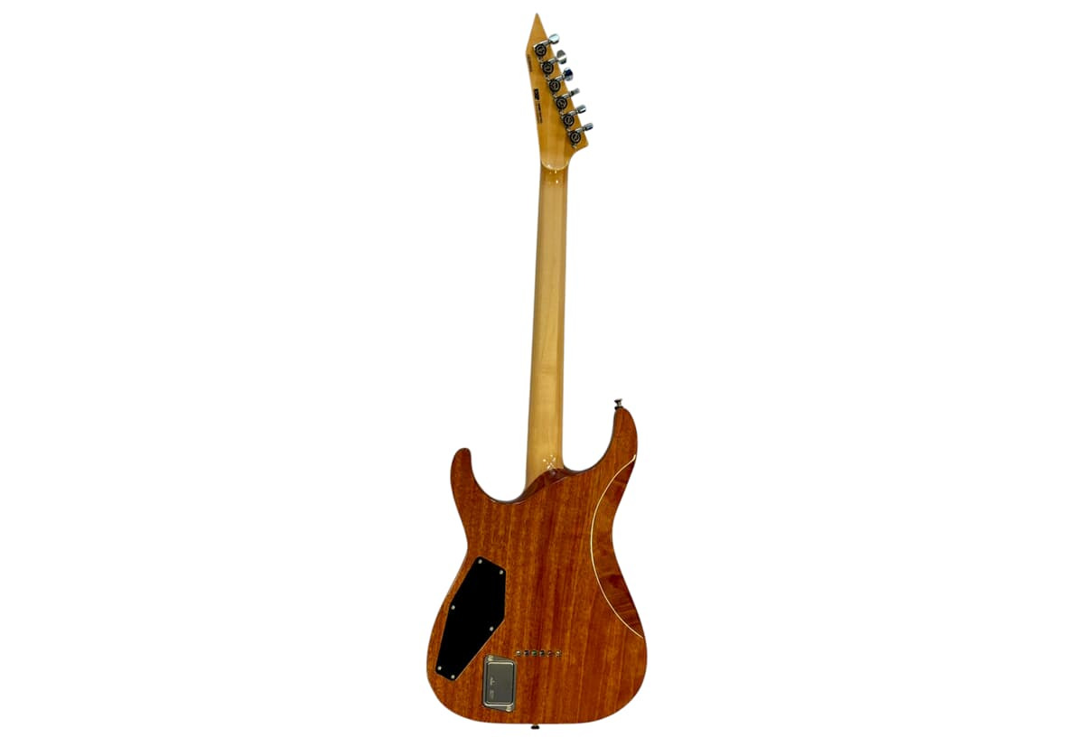 Denna set-thru-konstruktion ger utmärkt sustain och enkel åtkomst till de högsta banden. Halsen består av tre delar lönn och är formad i en extra tunn U-profil för blixtsnabbt spel. Greppbrädan i ebenholts är utrustad med 24 JESCAR extra-jumbo-band i rostfritt stål för kompromisslös hållbarhet och spelkänsla.