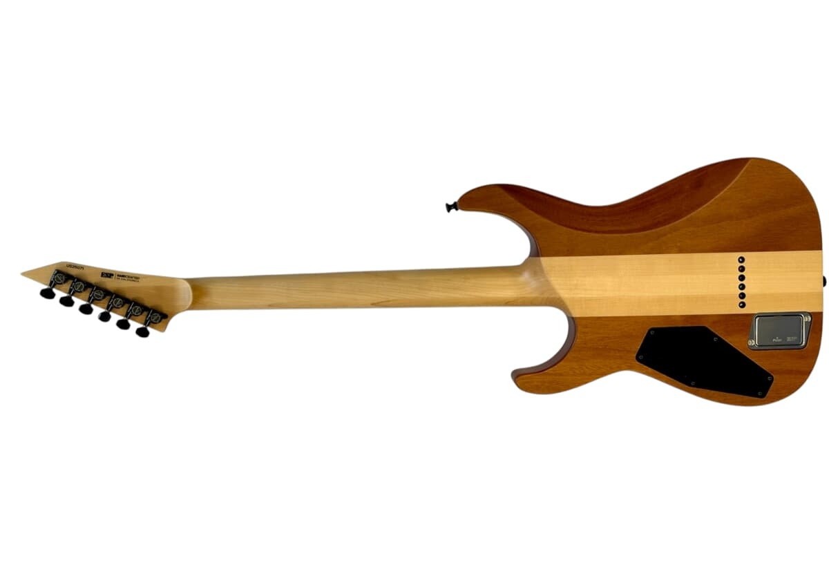 ESP USA Eclipse Blood Moon Satin kombinerar klassisk single-cut-design med modern teknik och detaljer i absolut toppklass. Handbyggd i Southern California av ESP:s egna luthiers, bjuder denna modell på en viktoptimerad, helgjuten mahognykropp i full tjocklek (60 mm) med en fantastisk quiltad lönntopp i burst-finish. Den matchande huvudplattan ger en sömlös estetik, och den naturligt maskerade bindningen framhäver träets djup och liv.