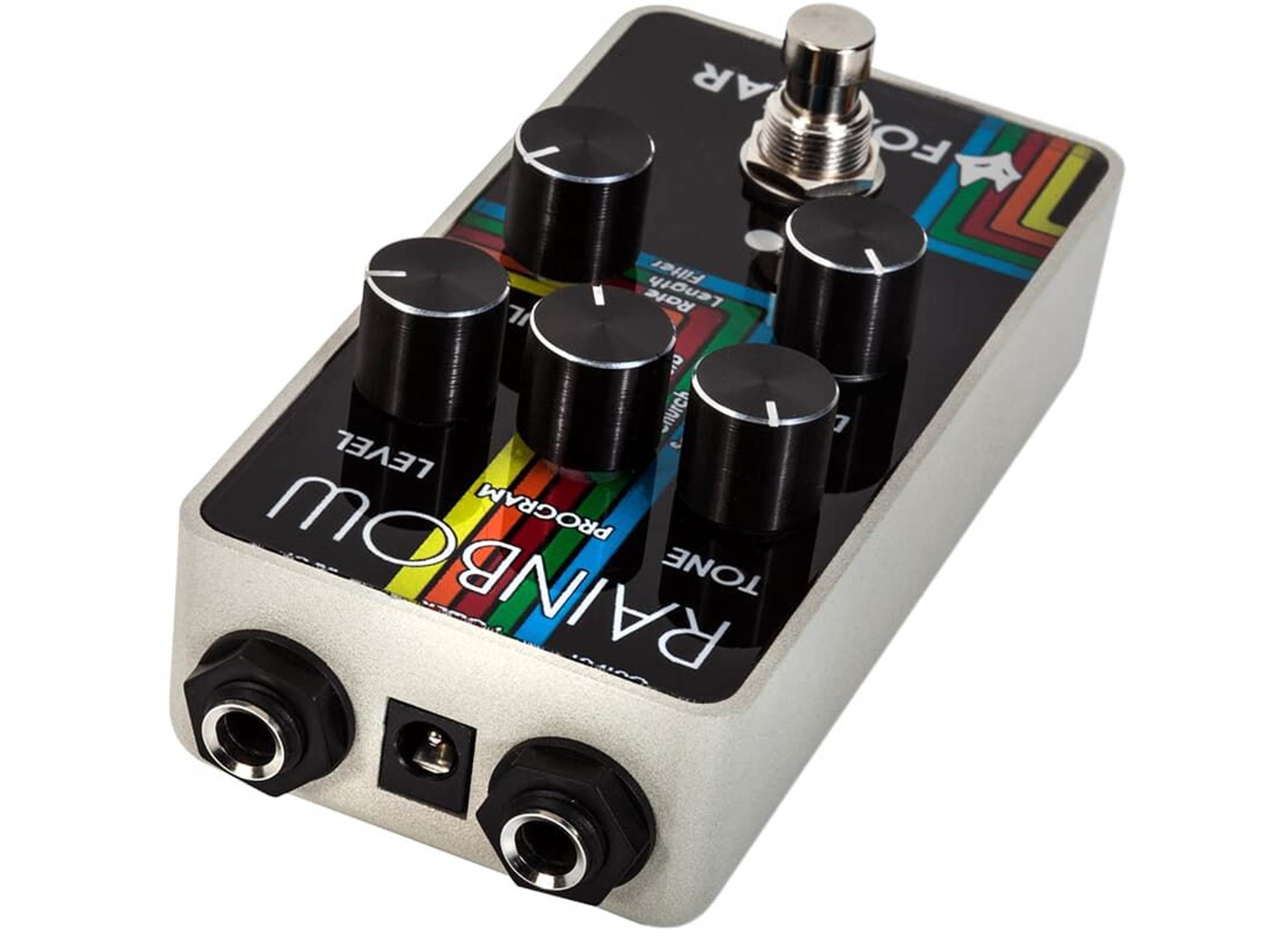Foxgear Rainbow, precis som alla andra Foxgear-pedaler, håller signalvägen 100% analog, med ljudkondensatorer (inga SMD-komponenter) i signalvägen och äkta bypass-relä, vilket undviker oönskade effekter på din ton när den används framför din förstärkare eller i FX-slingan. I kärnan av Rainbow finns den övre centrala väljaren som samverkar med "Multi"-kontrollen. Denna kontroll har specifika, men olika roller beroende på vald algoritm, och Tone- och Deep-kontrollerna arbetar för att hjälpa dig att uppnå oväntade nyanser i varje algoritm.