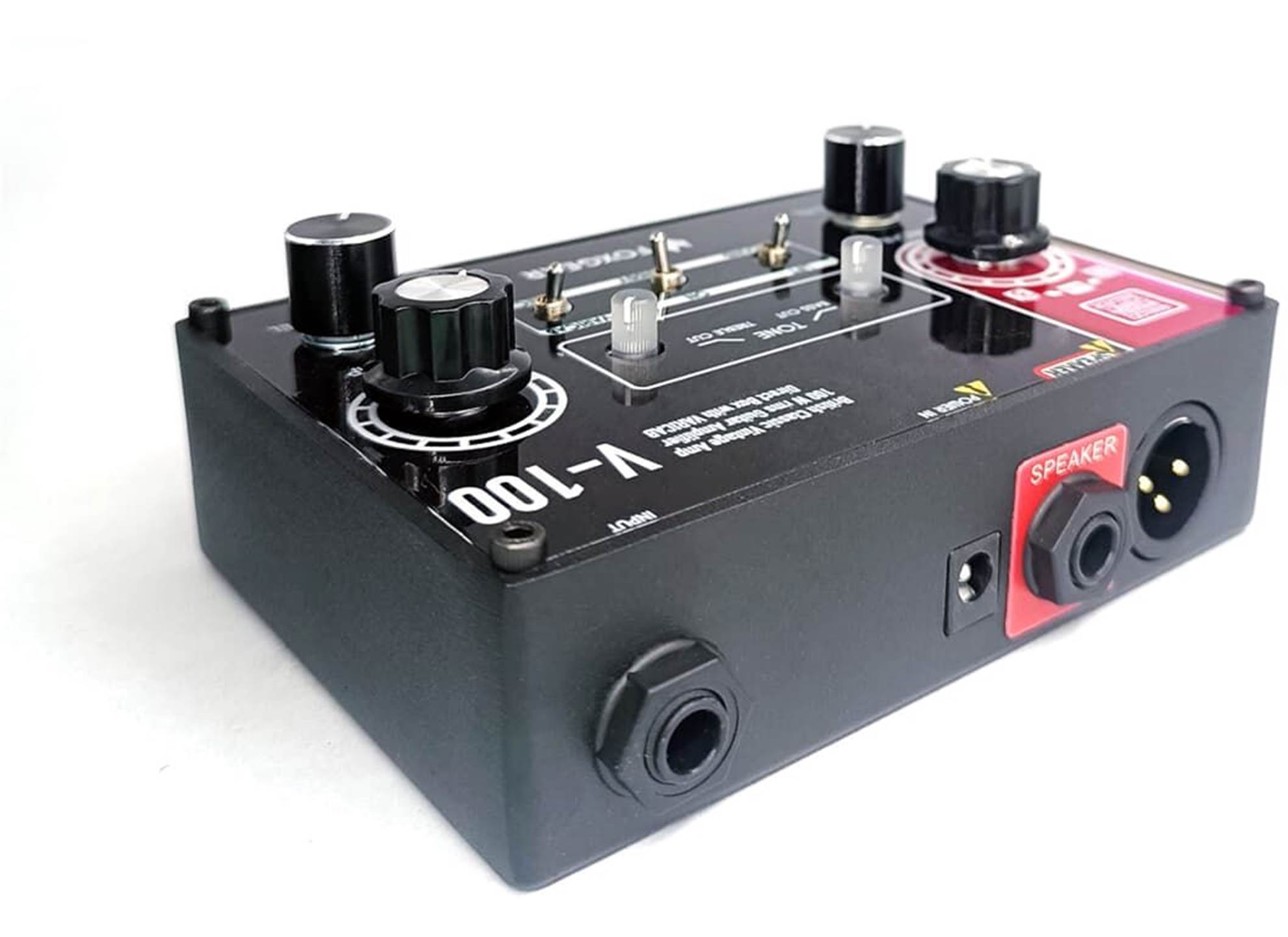 V-100 är tydligt inspirerad av 1960-talets era av Vox-förstärkare och återskapar exakt den typen av ton. Stor headroom, punch, mellanregister och briljanta höga frekvenser som gjorde det till en av de mest karakteristiska tonerna i rockhistorien. Vår Miniamp-serie är utformad för att vara de bästa vännerna till alla pedaler och erbjuder den bästa lösningen för repetitioner, spelningar, hemmaövningar, studioapplikationer, utan kompromisser. Den analoga variabla högtalarsimulatorn är en 100% analog simulering av olika EQ-kurvor som högtalare och mikrofoner tillämpar på din förstärkare i verkliga livet, och med en enkel och effektiv ratt kan du hitta din bästa sweet spot för att få direktljudet att låta precis som din riktiga högtalare bakom dig. V-100 erbjuder dig en exakt emulering av Vox AC30:s förstärkaravsnitt med dess legendariska och samtidigt märkliga tonstack med bas- och diskantreglage. Ta bara med din V-100 i din spelväska och anslut den till vilken högtalare som helst, till vilket PA-system som helst, samtidigt eller bara XLR-utgången med vilken högtalare som helst ansluten. Inga ånger, inga tonkompromisser.