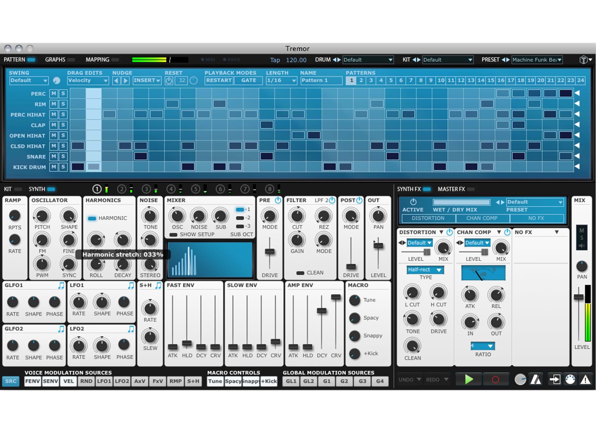 • Tremor: Analogue-modelled drum synthesis and sequencing