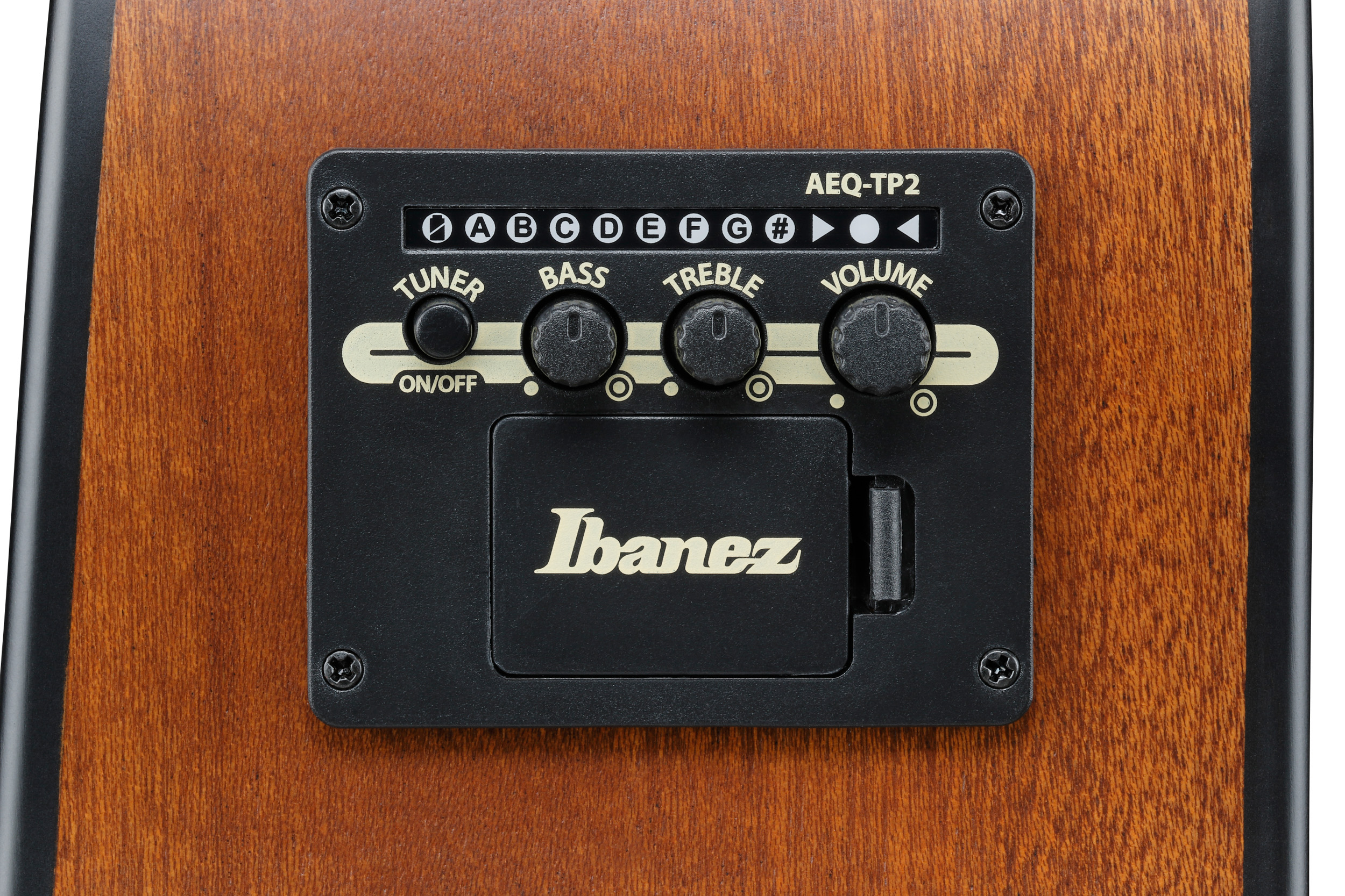 För förstärkt användning är gitarren utrustad med Ibanez T-bar undersaddle-pickup och AEQ-TP2-preamp med inbyggd stämapparat och 2-bands EQ. Kombinationen av balanserad XLR-utgång och 1/4”-utgång gör AAD54E väl anpassad för både scen, studio och direktanslutning till PA eller inspelningsutrustning. Finishen i Open Pore Mahogany Sunburst ger ett naturligt och elegant uttryck som låter träets karaktär komma till sin rätt.