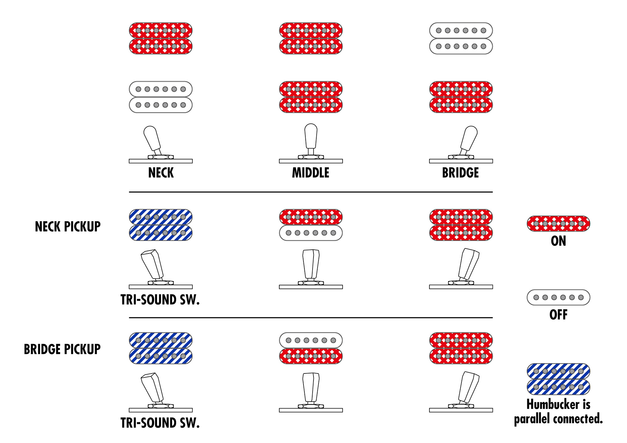 Super 58-humbuckers levererar ett varmt, nyanserat ljud med klassisk karaktär. Med två separata tri-sound-switchar utökas gitarrens ljudpalett ytterligare, vilket gör det möjligt att forma tonen för olika spelstilar och musikaliska sammanhang utan att kompromissa med grundkaraktären.