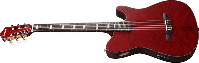 Ibanez FRH20QMN-WRL – Tunn nylonsträngad hybrid i Wine Red Low Gloss