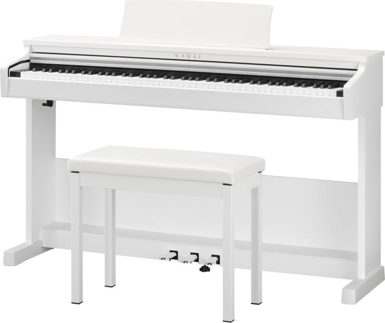 Digitalpiano med 88 viktade tangenter, Shigeru Kawai SK-EX-sampling, Bluetooth MIDI, USB-MIDI, 192-toners polyfoni, 22W högtalarsystem, inbyggda övningsstycken och slimmat kabinett i svart eller vitt.