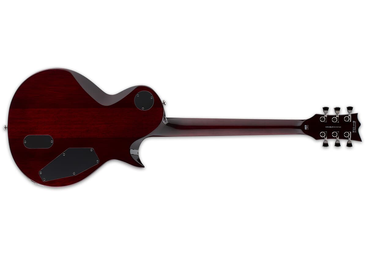 Guitars in the LTD EC-1000 Series are designed to offer the tone, feel, looks, and quality that working professional musicians need in an instrument, along with the pricing that typical musicians can still afford. The EC-1000QM offers the sumptuous look of a quilted maple top along with the classy LTD Deluxe features that set it apart from other guitars in its range, such as abalone inlays and purfling, full body/neck/headstock binding, and premier components like LTD locking tuners, a Tonepros locking TOM bridge and tailpiece, and the aggressive punch of active EMG 81/60 pickups. It also offers set-thru construction with a mahogany body, 3 pc. mahogany neck, and 24-fret pau ferro fingerboard. Available in See Thru Black Cherry finish.