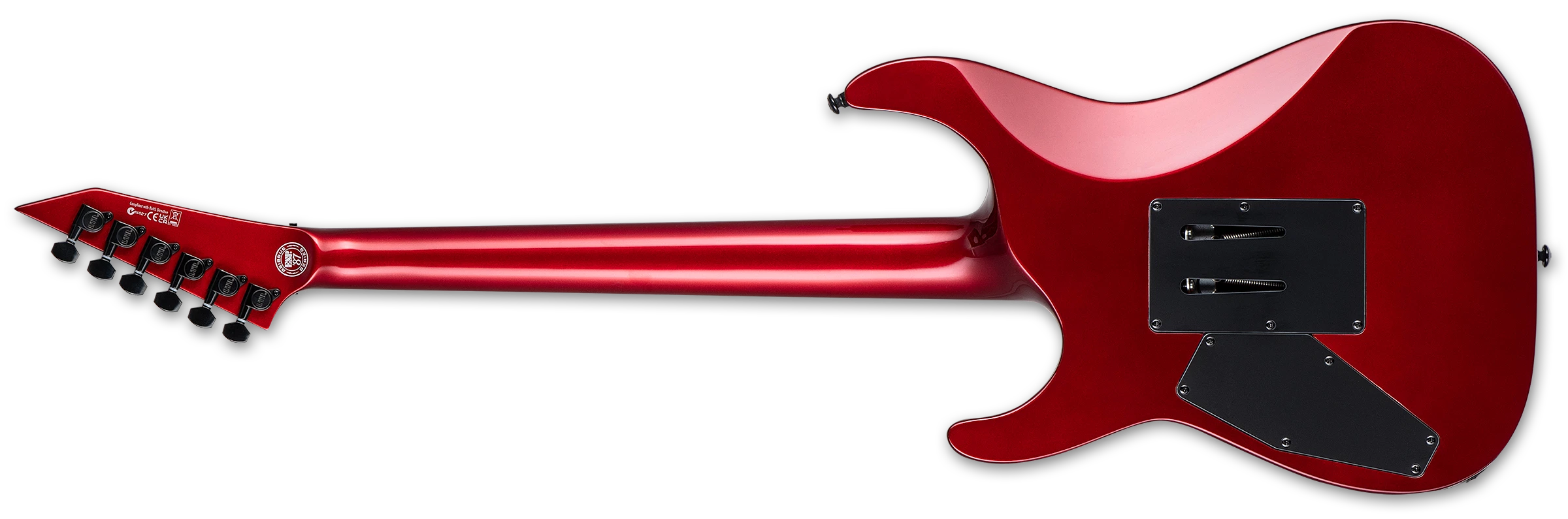 Elgitarr med neck-thru-konstruktion, alderkropp, 3-delad lönnhals, Macassar ebenholtsgreppbräda, Seymour Duncan Custom och Hot Rails pickuper, Floyd Rose 1000 tremolo, coil split och 25,5” mensur.