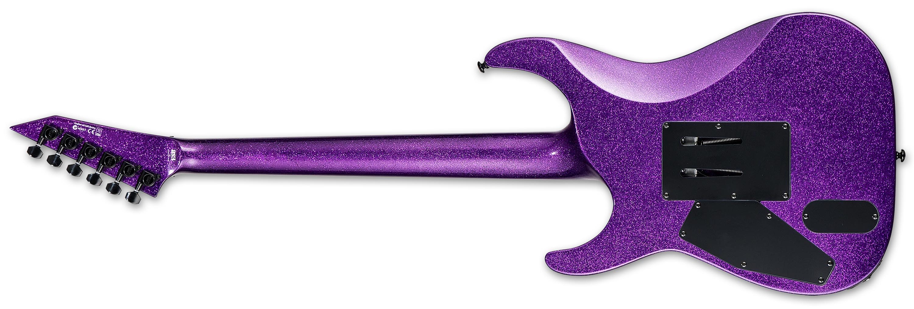 The LTD KH-602 is a Kirk Hammett Signature Series guitar that offers just about everything that its higher-end cousin, the ESP KH-2, does, at a price that more musicians can afford. Now available in both the original Black finish as well as an updated Purple Sparkle version based on Kirk’s personal ESP Custom instrument, the KH-602 features neck-thru-body construction, with a comfortable alder body, a three-piece extra-thin U-shaped maple neck, pau ferro fingerboard with 24 extra-jumbo frets and Kirk's skull-and-bones inlays, and components that include a Floyd Rose 1000 bridge and a set of EMG Kirk Hammett Bone Breaker Signature pickups. It's a powerful guitar designed for professional recording and live performance, perfect for any serious player of intense music. Left-handed version available (Black finish only).