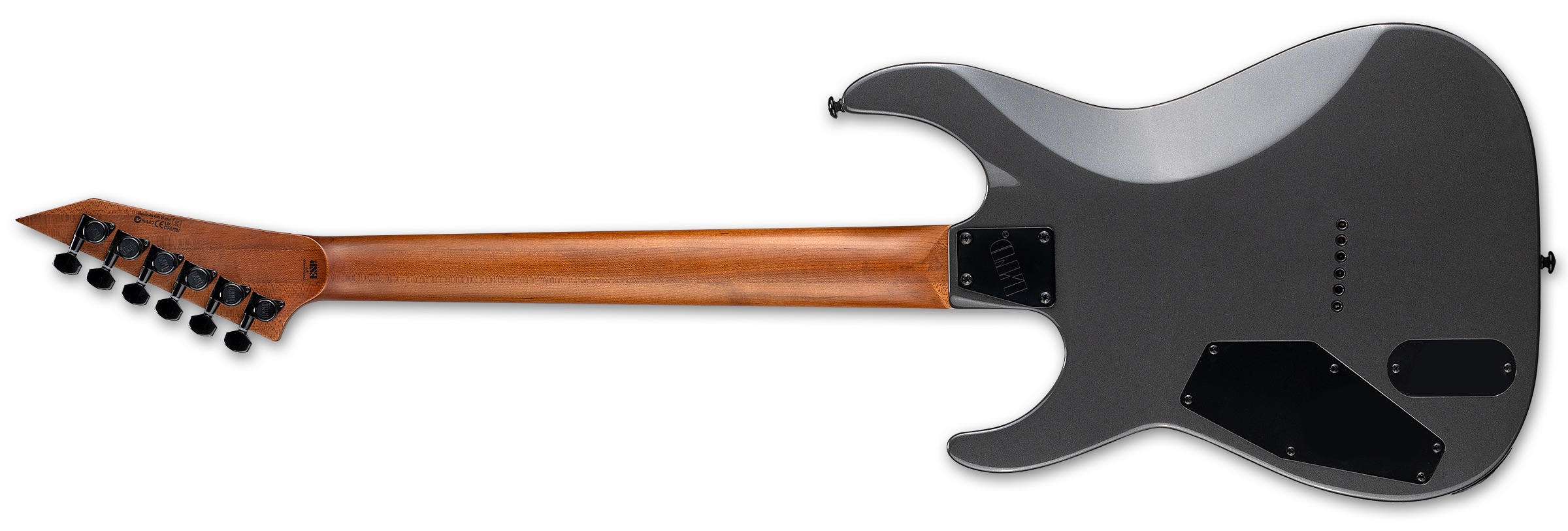 Elgitarr med bolt-on-konstruktion i 25,5” skala, mahognykropp och 3-delad roasted maple-hals med Extra Thin U-profil, rosewood-greppbräda med 24 extra-jumbo band, aktiva EMG 81/85-pickuper samt fast LTD hardtail-brygga med string-thru-body.
