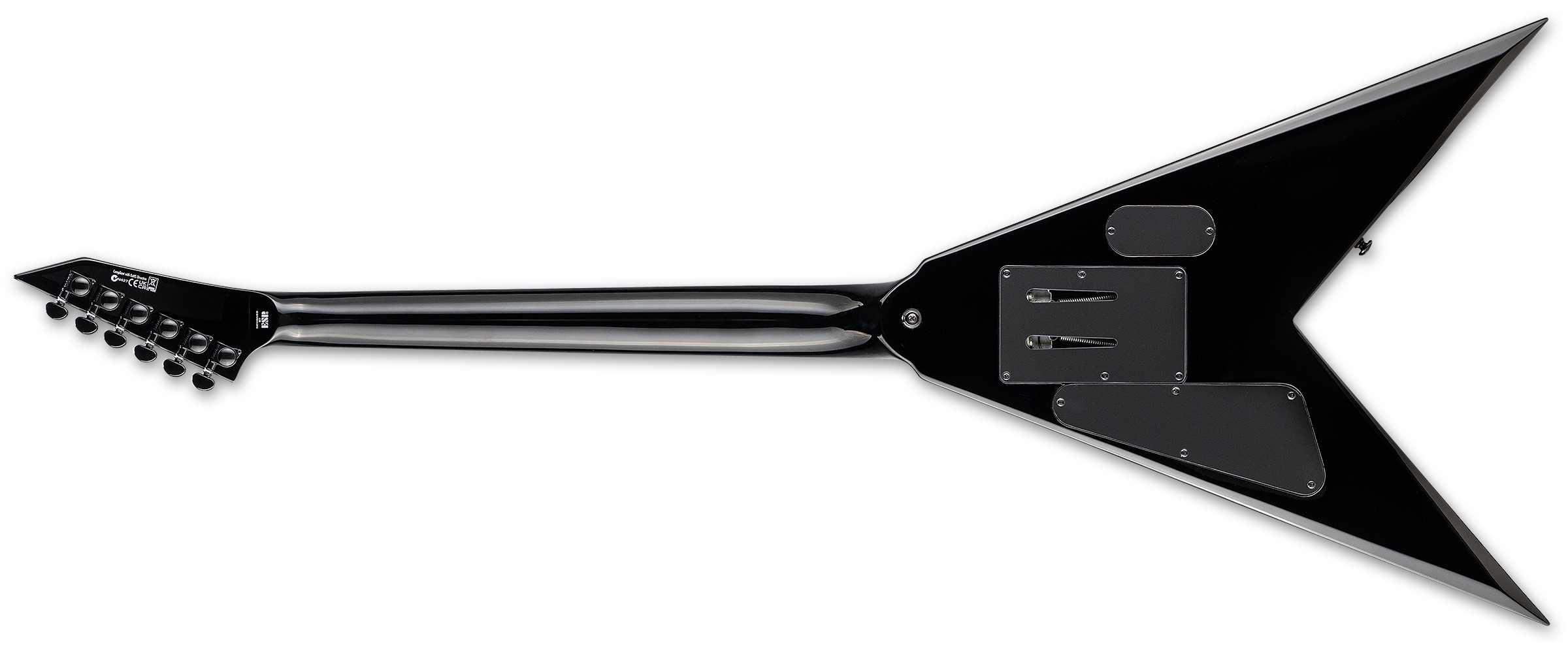 Elgitarr med neck-thru-konstruktion, aggressiv V-form, aktiv EMG-elektronik och Floyd Rose-tremolo, utvecklad för maximal stabilitet och precision i krävande spelmiljöer.