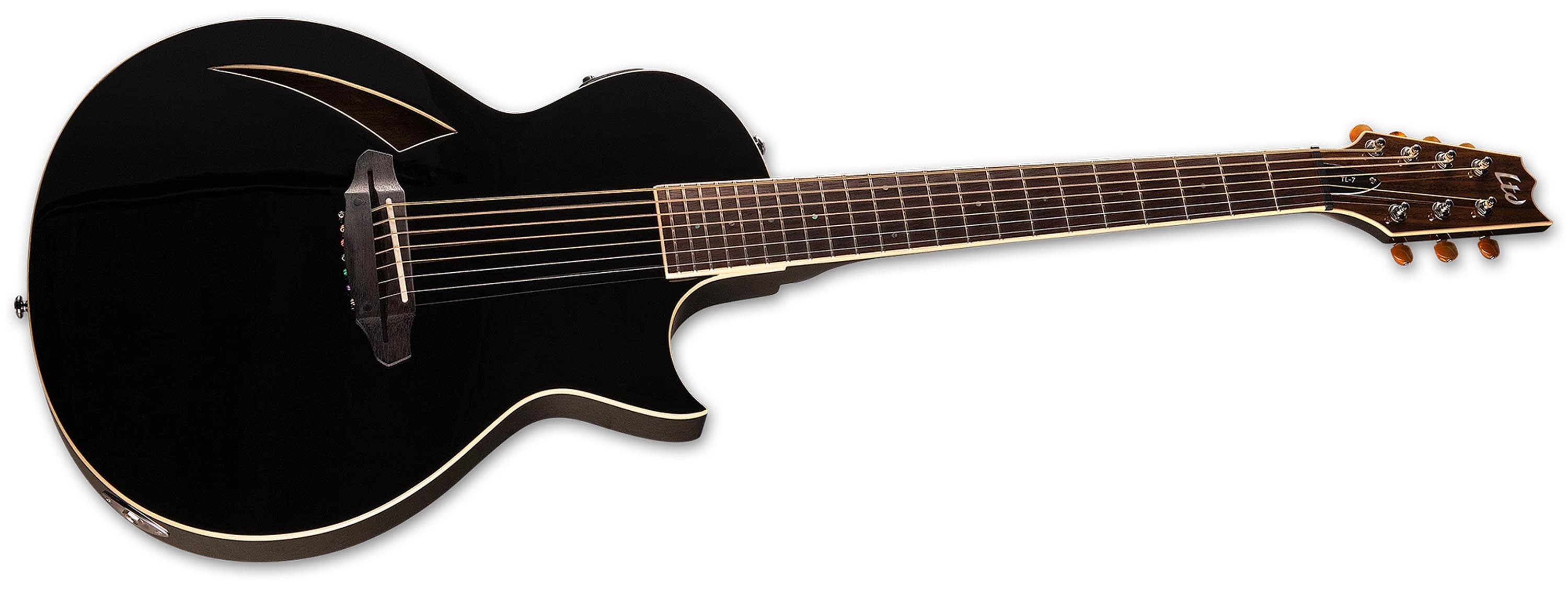 LTD’s TL series is a transducer-electric guitar series designed for musicians who want the sound of an acoustic guitar, but with the playing comfort and fast feel of an electric guitar. The remarkable LTD TL-7 is the first 7-string model in this series. It gives you the expanded range you need for specialized music forms, with the lowest string typically tuned to B. The TL-7 has high-quality components like a Graphtech Nubone XB nut and saddle, Grover tuners, a Fishman SONICORE pickup, and Fishman TL-3 preamp with onboard tuner. If you've been searching for that full-body acoustic tone on your next performance or recording, then you will most definitely want to check out a TL Series model today.