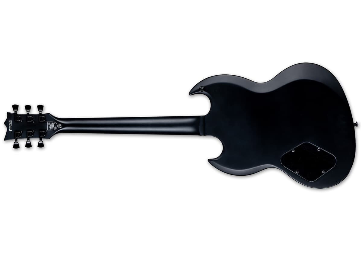 Updated with an awesome new Distressed Black Satin finish, the LTD Volsung is the Signature Series guitar from Lars Frederiksen of the iconic punk rock band Rancid. Based on the ESP Viper body style, the Volsung is even more streamlined, keeping the guitar's light weight ideal for energy-filled live shows and long recording/writing/jamming sessions. Its three-piece thin U-shaped mahogany neck is exceptionally smooth and fast, and it features Lars' signature passive EMG pickup set, the LF-DMF. This pickup set features a ceramic magnet in the bridge for excellent articulation, and an Alnico V in the neck for punchy, in-your-face midrange. It also features set-neck construction for fast and smooth access to the highest frets, as well as an ebony 24-fret fingerboard with glow in the dot side markers, Gotoh tuners, and TonePros locking TOM bridge and tailpiece. The LTD Volsung also offers a unique three-control configuration, with individual knobs for each pickup's volume plus a tone control.