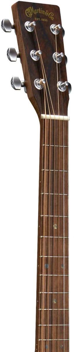 Akustisk stålsträngad gitarr med mindre kropp, granlock och Cocobolo-HPL, skapad för att leverera klassisk Martin-ton och modern spelkomfort.
