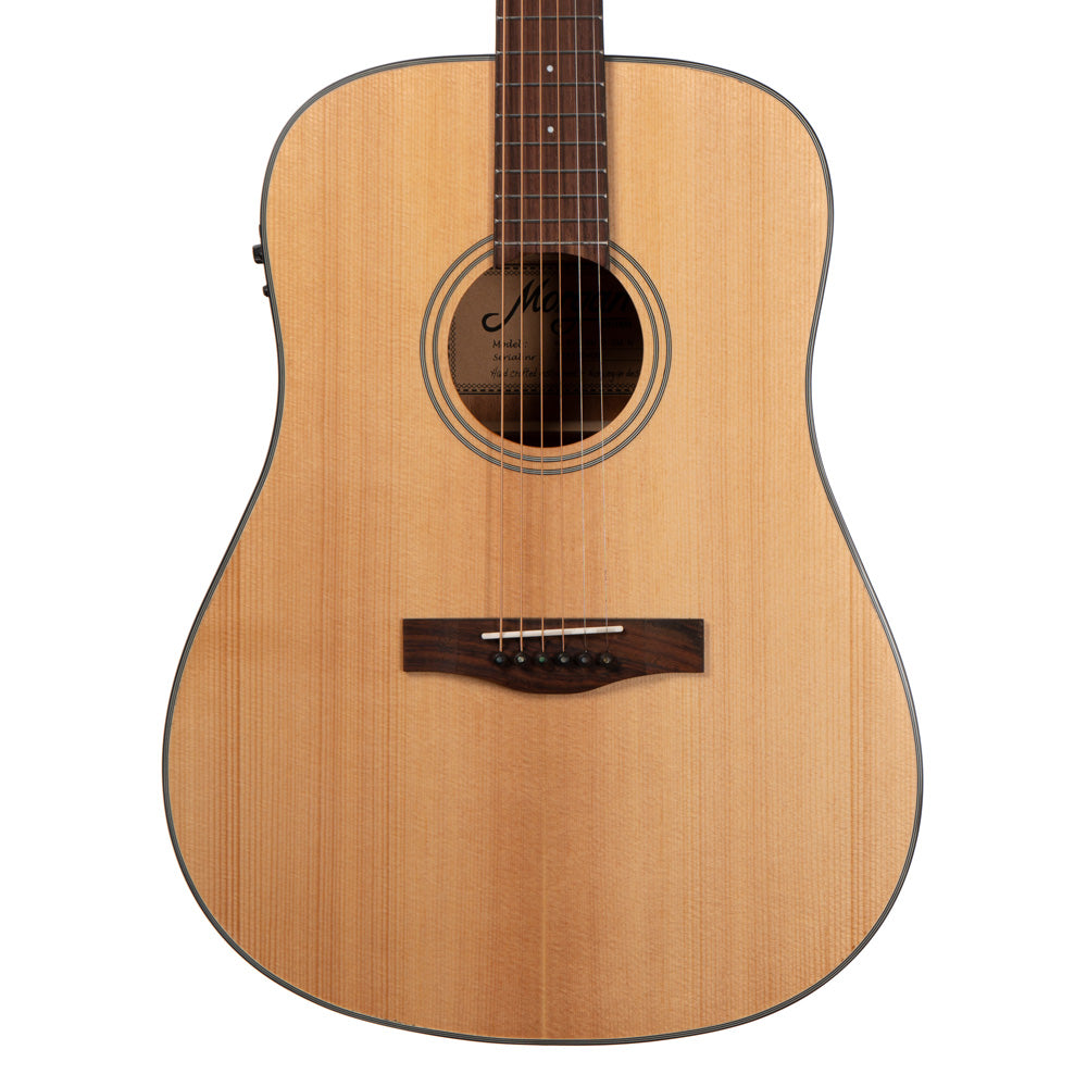 Stålsträngad akustisk gitarr med dreadnought-kropp, solid topp, balanserad projektion och inbyggd elektronik för både scen och studio.