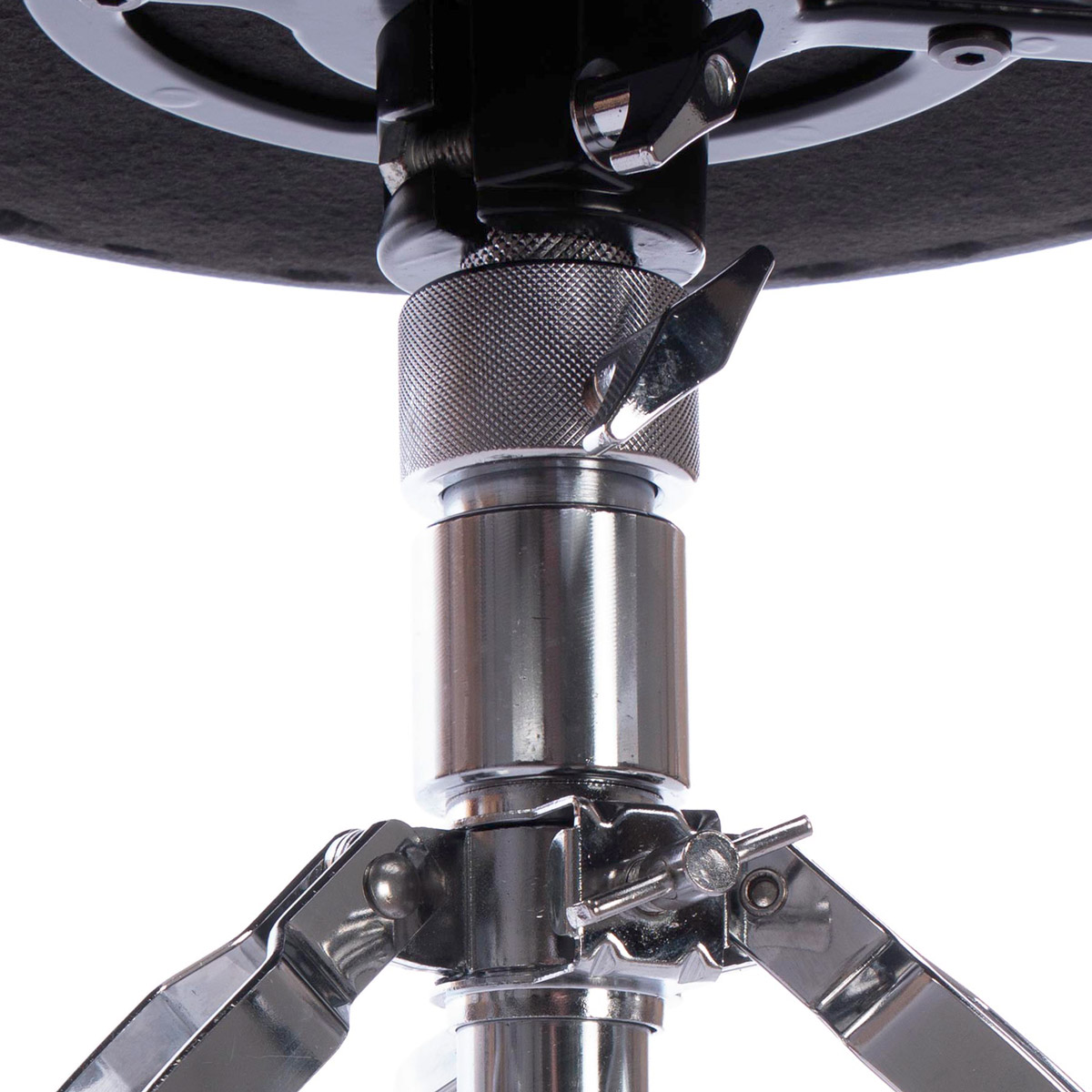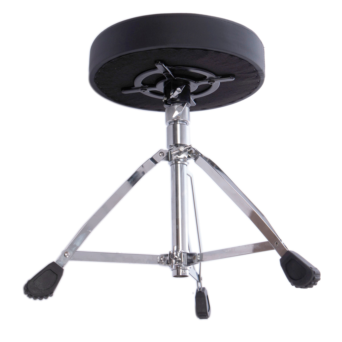 Den runda sitsen ger en klassisk sittposition och möjliggör god rörelsefrihet bakom trumsetet. Höjdjusteringen gör det enkelt att anpassa stolen efter spelarens preferenser, vilket bidrar till en ergonomisk spelställning oavsett spelstil.