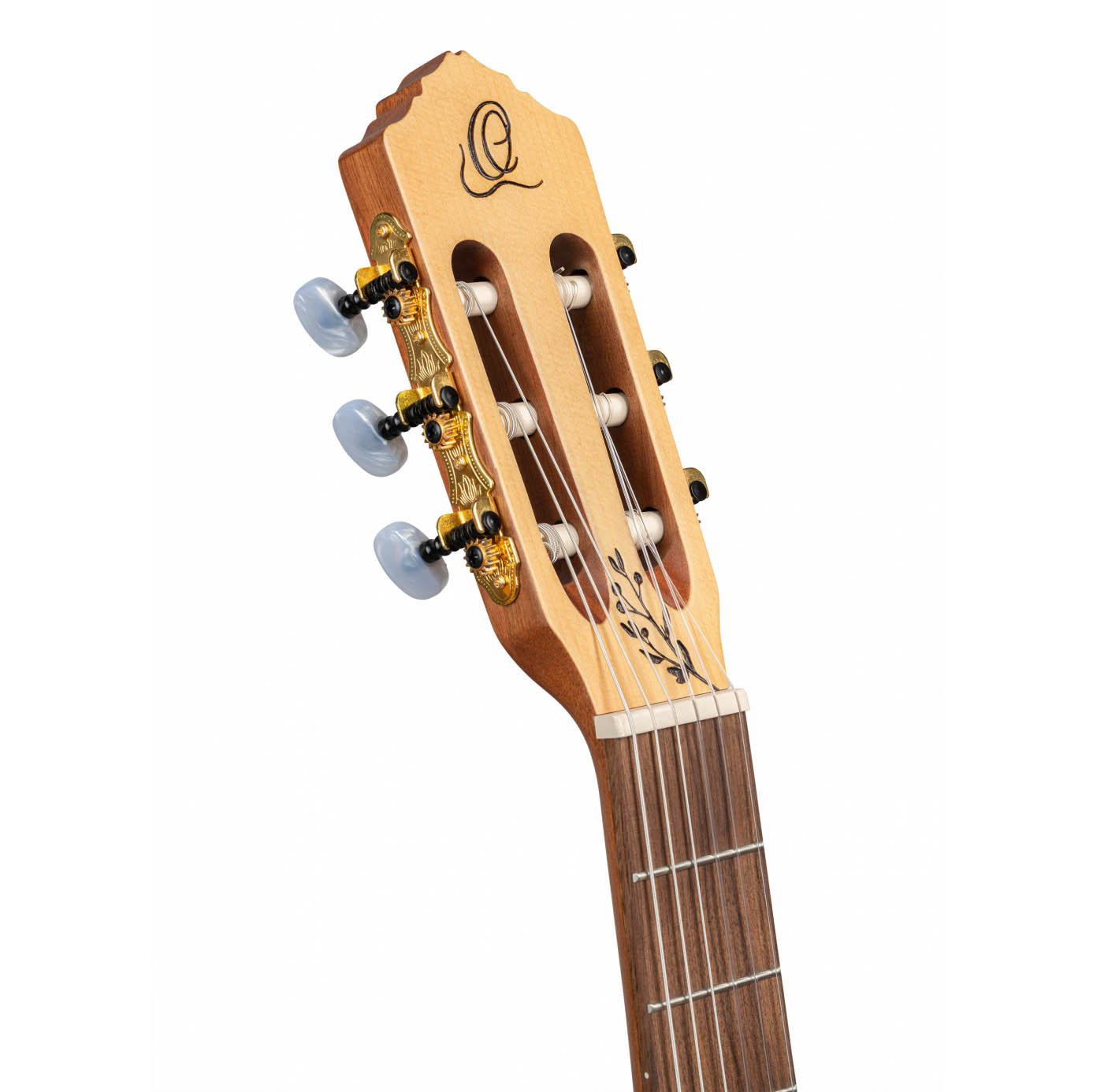 Ortega RSCECG är en klassisk gitarr i fullstorlek (4/4) och en del av Scandinavian Edition, en exklusiv serie framtagen för den nordiska marknaden. Med en kropp helt i gran och detaljer som lasergraverat lingonris i rosetten samt diskreta inlägg på greppbrädan, kombinerar detta instrument skandinavisk design med klassiskt hantverk. Gitarren levereras med en gigbag, vilket gör den idealisk för både transport och förvaring.