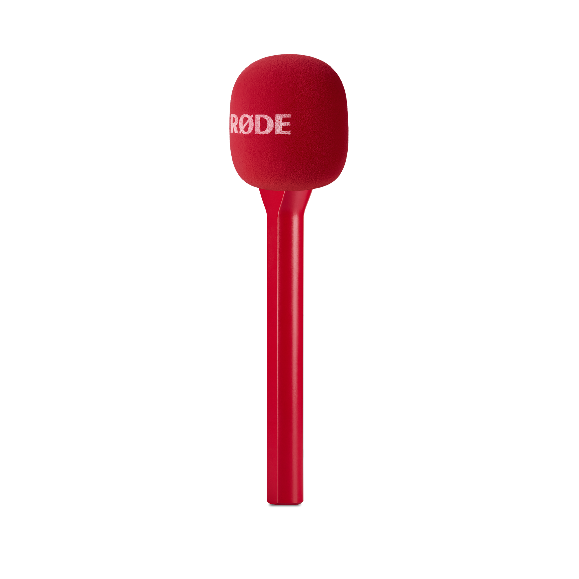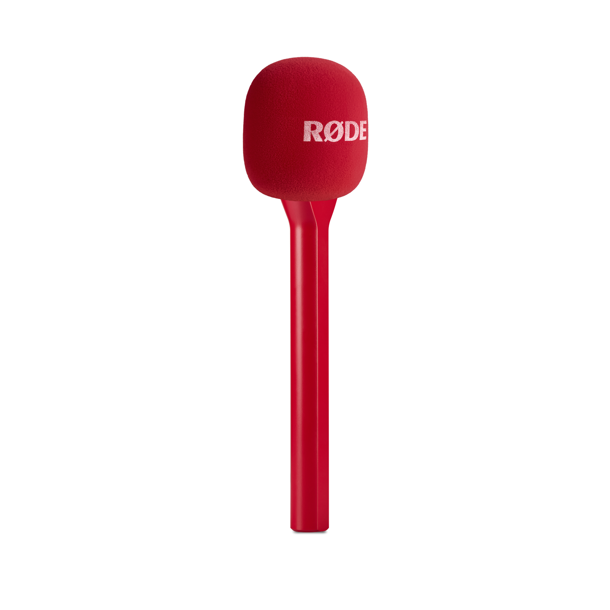 Handhållen mikrofonadapter för RØDE Series IV-sändare som omvandlar trådlösa clip-on-mikrofoner till intervjumikrofon, kompatibel med Wireless PRO, Wireless GO II, Wireless ME och Wireless GO, med vindskydd för förbättrad taltydlighet.