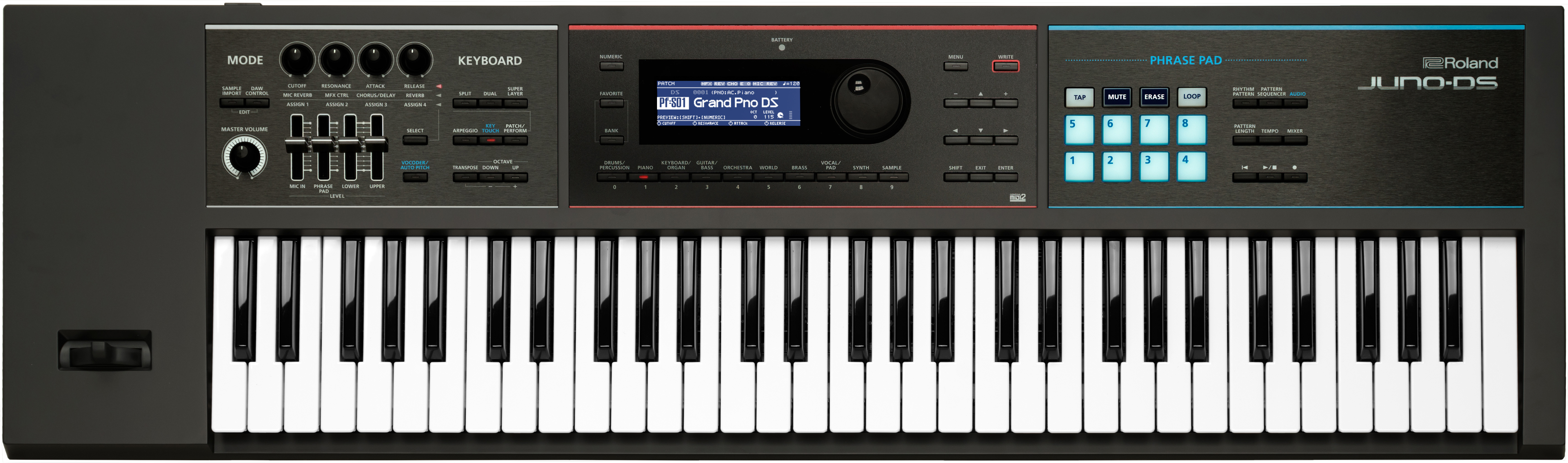 Utöver de inbyggda ljuden kan man nämna en sak som har gjort JUNO-serien till en favorit bland keyboardister och det är dess användarvänliga interface, vilket gör det enkelt att snabbt få fram fantastiska ljud. Men om du gillar att skräddarsy dina egna ljud, erbjuder JUNO-DS61 ännu fler justerbara parametrar än tidigare, så att du kan justera dem med detaljerad precision. Frontpanelen ger en utökad uppsättning av rattar och reglage för att skapa patcher och justera ljudet medan du spelar, samtidigt som den bakre panelen har uttag för att ansluta både sustain- och expression-pedaler samtidigt.