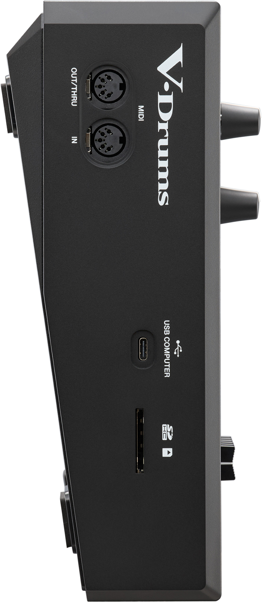 - Tre dedikerade pad-ingångar för Rolands innovativa digitala virvel-, ride- och hi-hat-pads.