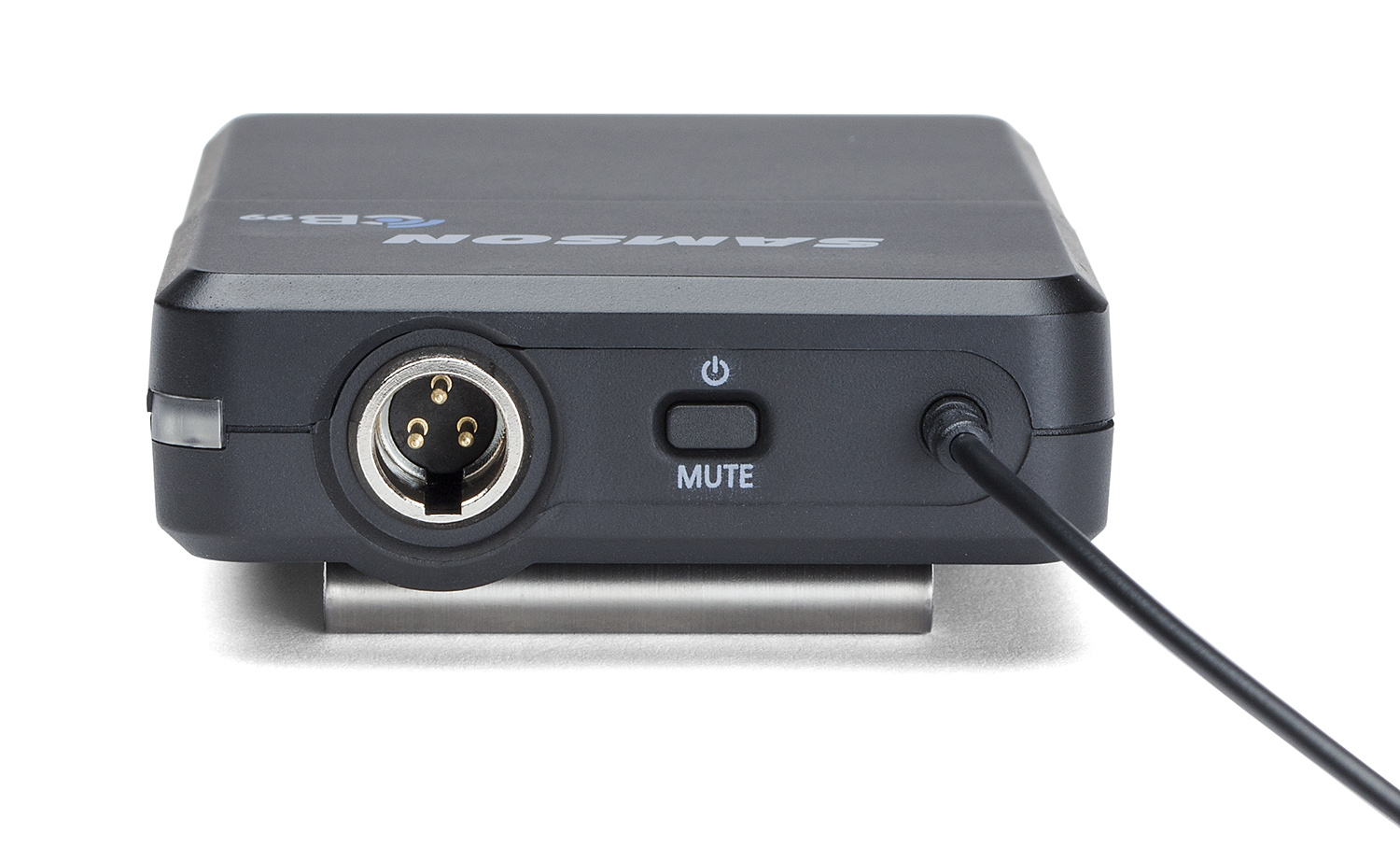 Audio reaches the CR99 Wireless Receiver receiver via the CB99 Beltpack Transmitter, which features Samson's GC32 Guitar Cable with a locking connector. Offering eight hours of battery life using two AA batteries (not included), the CB99 transmitter features a variable Gain control, popless 1-touch Mute button and metal belt clip.