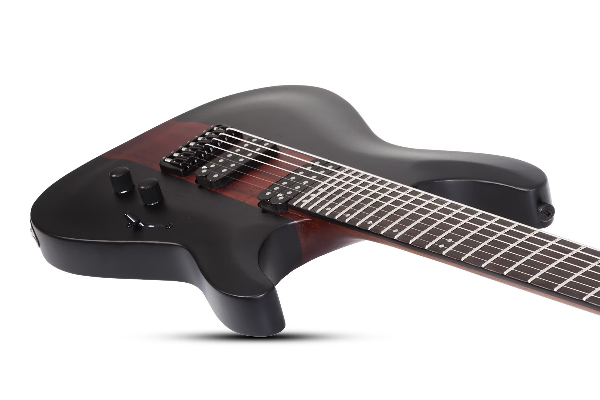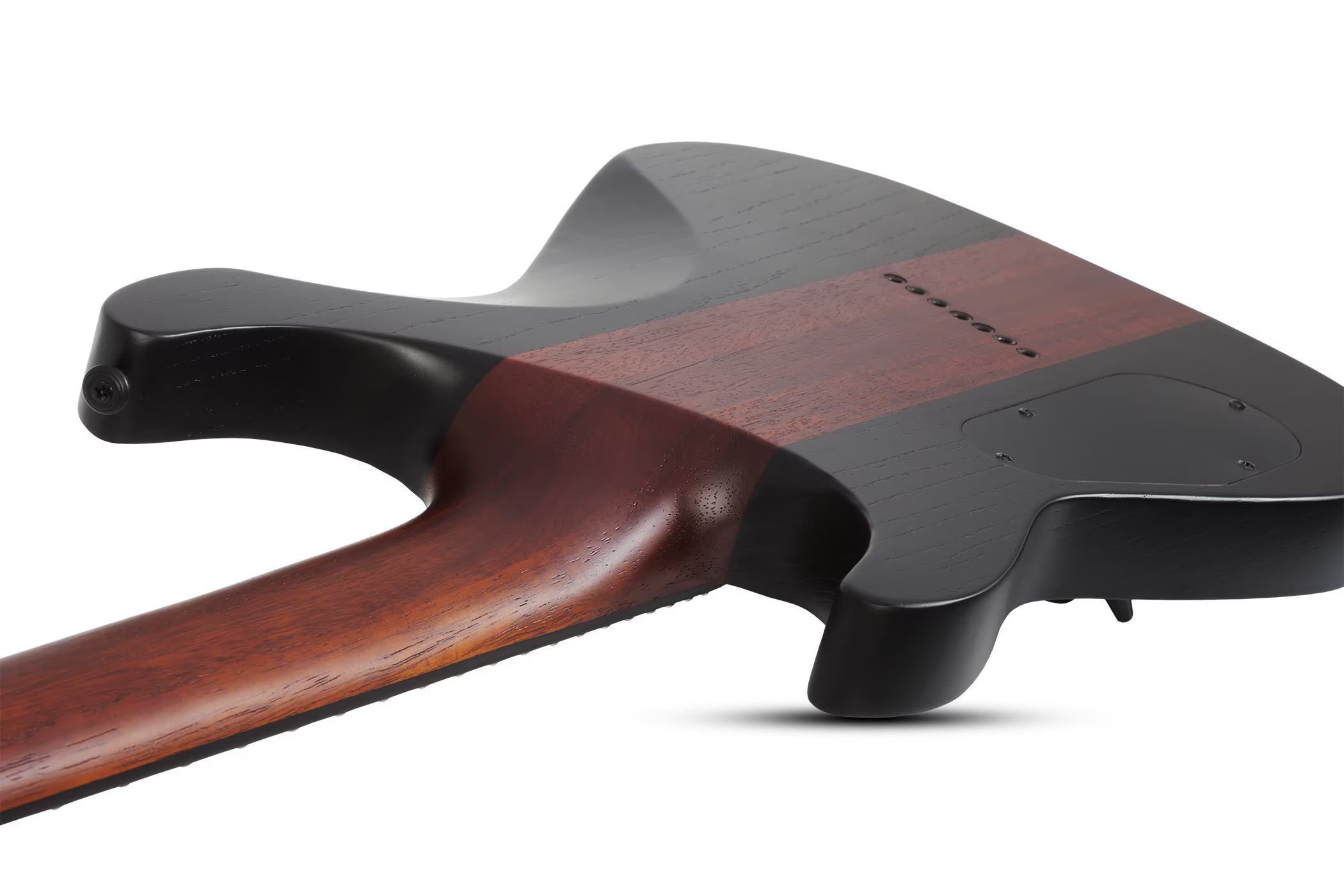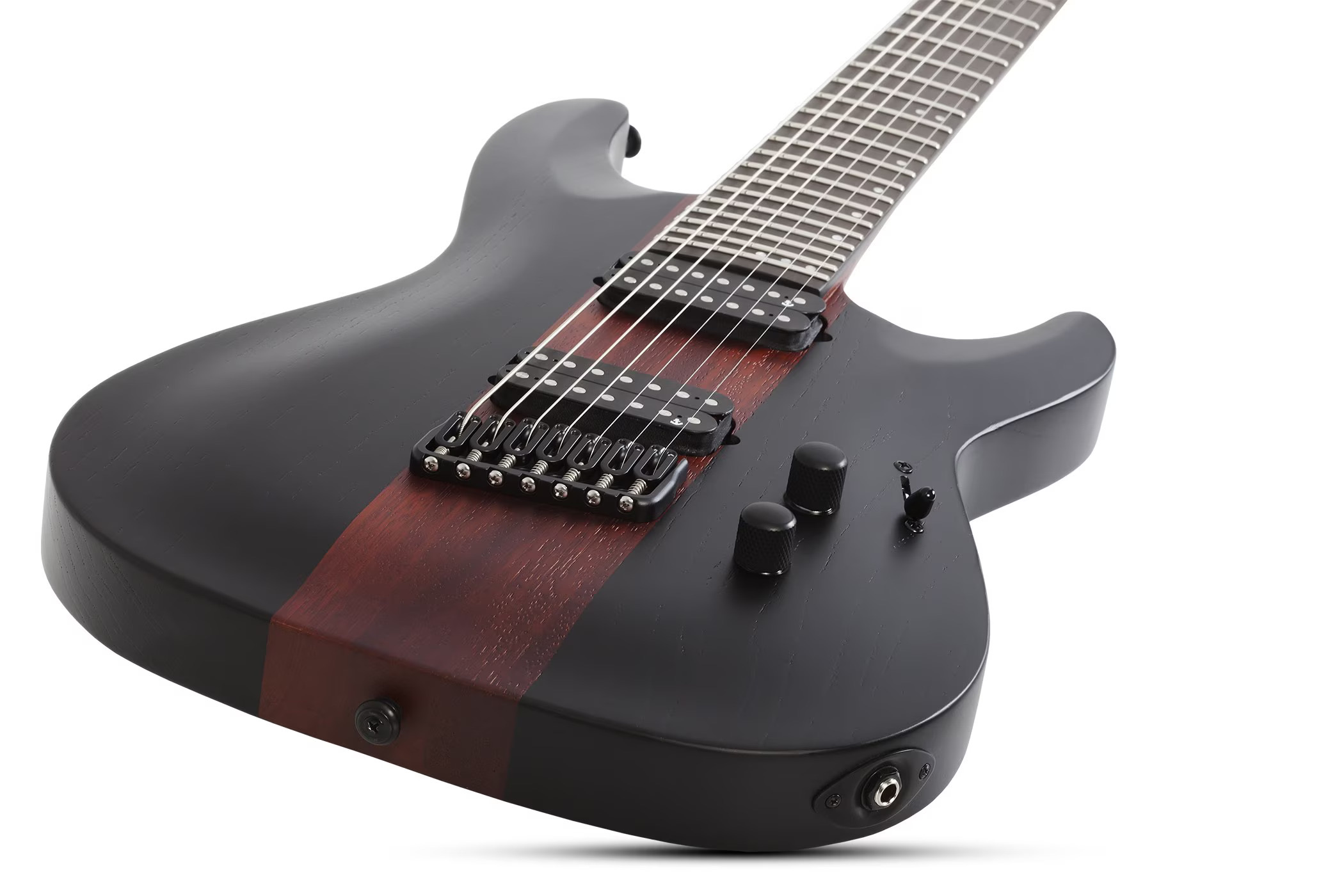 7-strängad multiscale-elgitarr med neck-thru-konstruktion, kropp i swamp ash och 3-delad mahoganyhals med greppbräda i ebony. Utrustad med Schecter Diamond ’78 Rob Scallon, Hipshot Hardtail och låsbara stämskruvar.