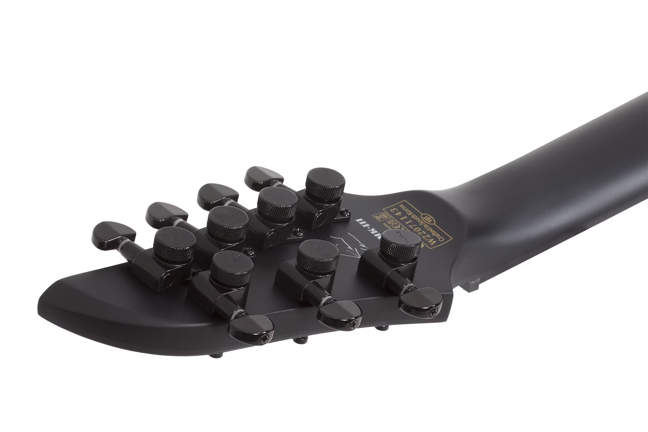 Schecter KM-7 MK-III Legacy är en 7-strängad modell med neck-thru-konstruktion och Ultra Access för obehindrad åtkomst över hela greppbrädan. Kroppen är byggd i mahogany med topp i flamed maple och radius top-design.