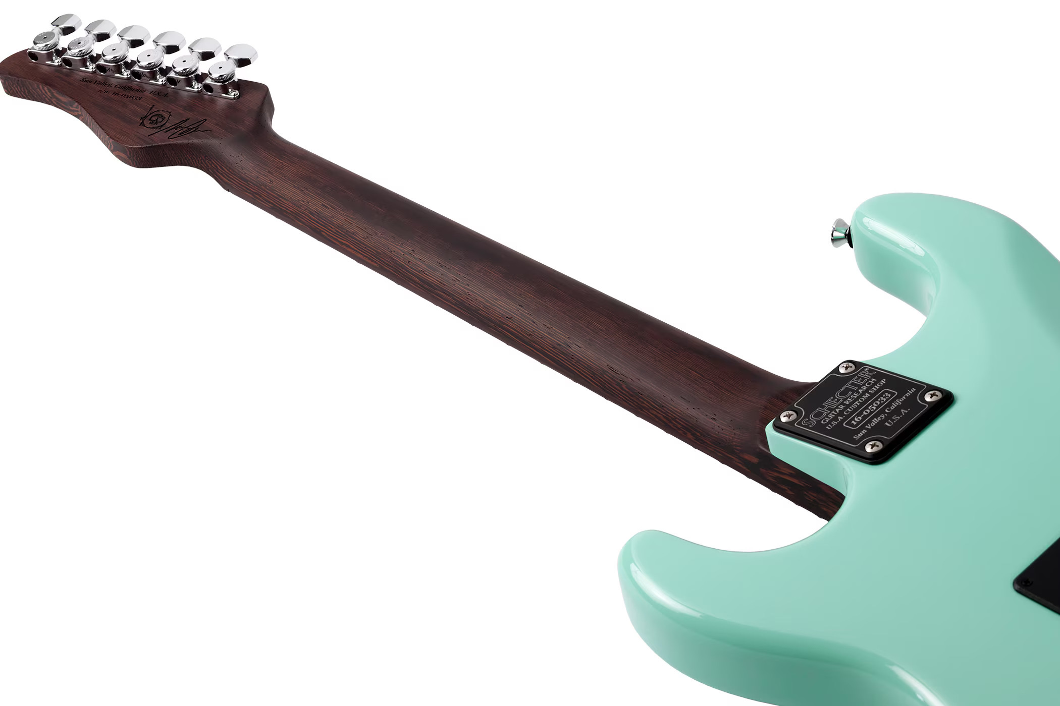 Elektroniken består av Nick Johnston Signature Atomic Set och styrs via Master Volume, Master Tone samt 5-vägs slider switch. Gitarren är utrustad med Schecter Vintage 2-Point Tremolo och Schecter/Hipshot Staggered Locking Tuners.