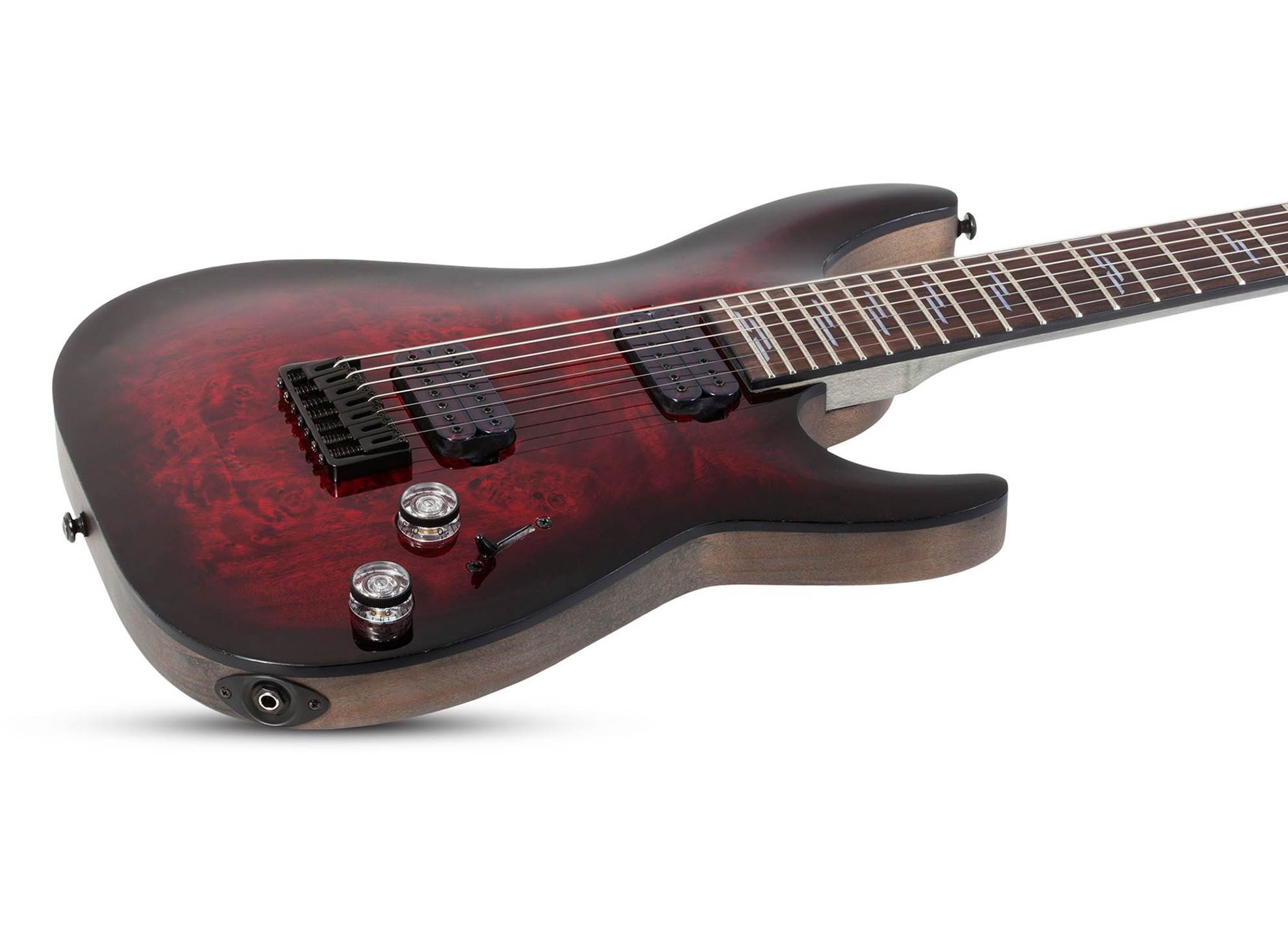 Omen Elite-6 Black Cherry Burst är en 7-strängad elgitarr från Schecter. Gitarren är tillverkad i träslagen Mahogany, Burl, Maple och Rosewood. Kroppen är gjord i Mahogany med Burl-topp och halsen är gjord i Maple med Rosewood-greppbräda. Gitarren är utrustad med Schecter-stämskruvar, Custom Hardtail 6-stall och 2 stycken Diamond Heretic-pickups.