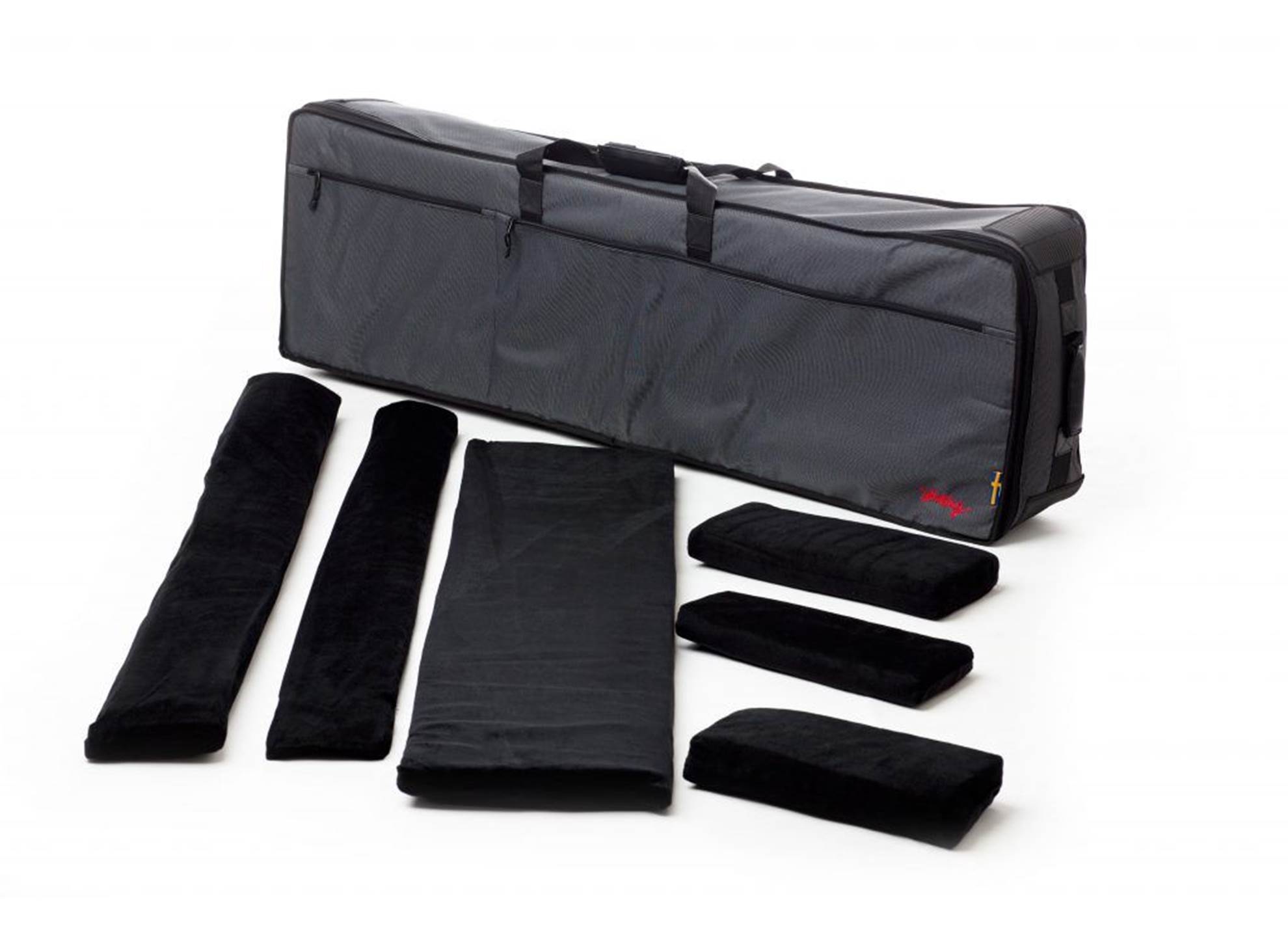 Letar du en lätt men stryktålig gigbag till ditt lite dyrare Stage piano kan SLB-KB88 vara alternativet. Här finns totalt 29 mm stoppning inklusive en 4 mm iläggsskiva för extra stöttålighet. Med fyra d-ringar isydda på utsidan spänner du enkelt fast keyboardstativet på väskan. Tre stycken hjul och extra lyft- och bärhandtag på kortsidorna gör transport och hantering extra smidig. Flera invändiga kuddar gör att väskan passar många olika storlekar och modeller. Svensk design.