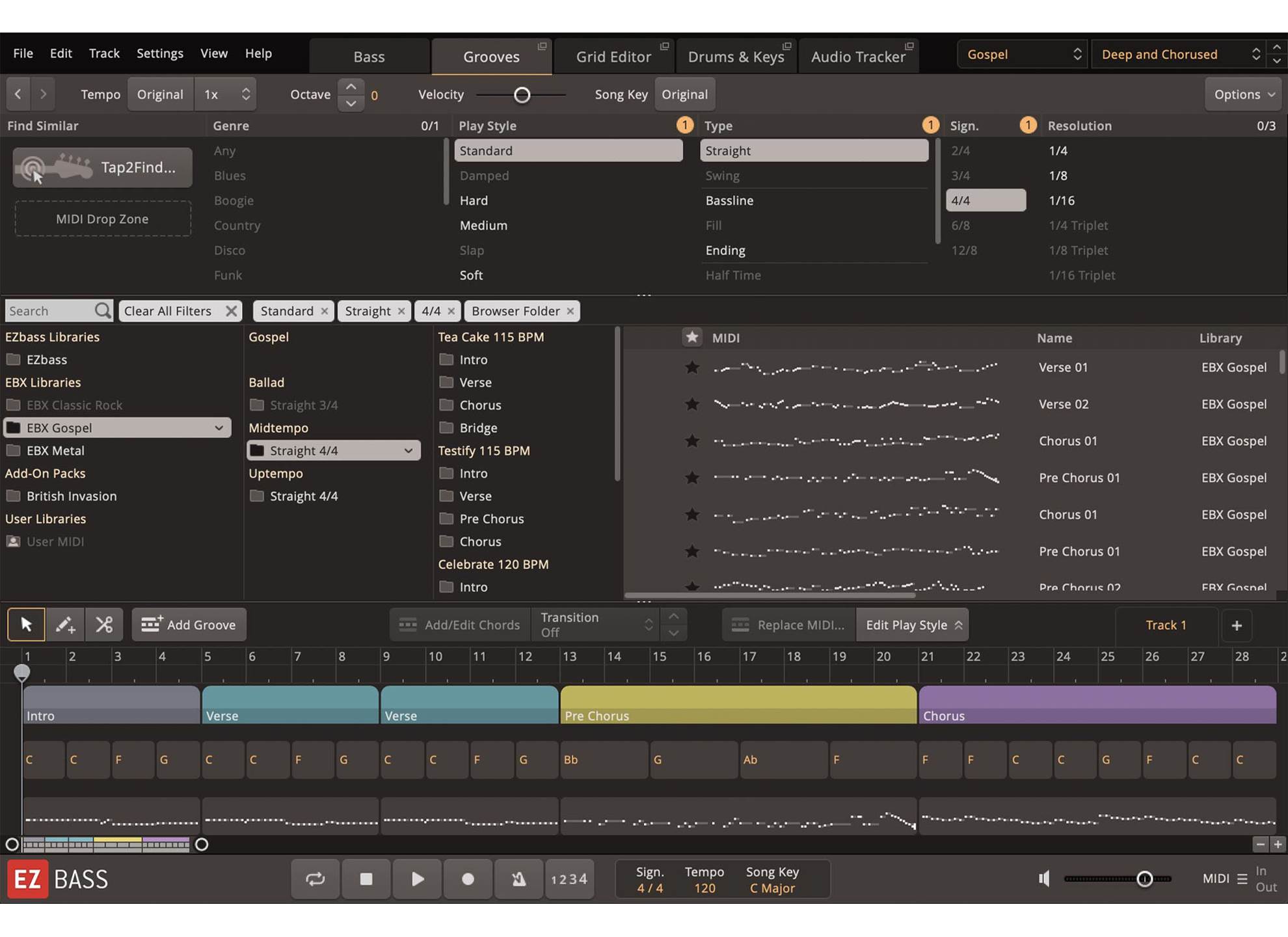 EZbass expansion, samplad bas, presets och midi-filer för Gospel-inspirerad musik