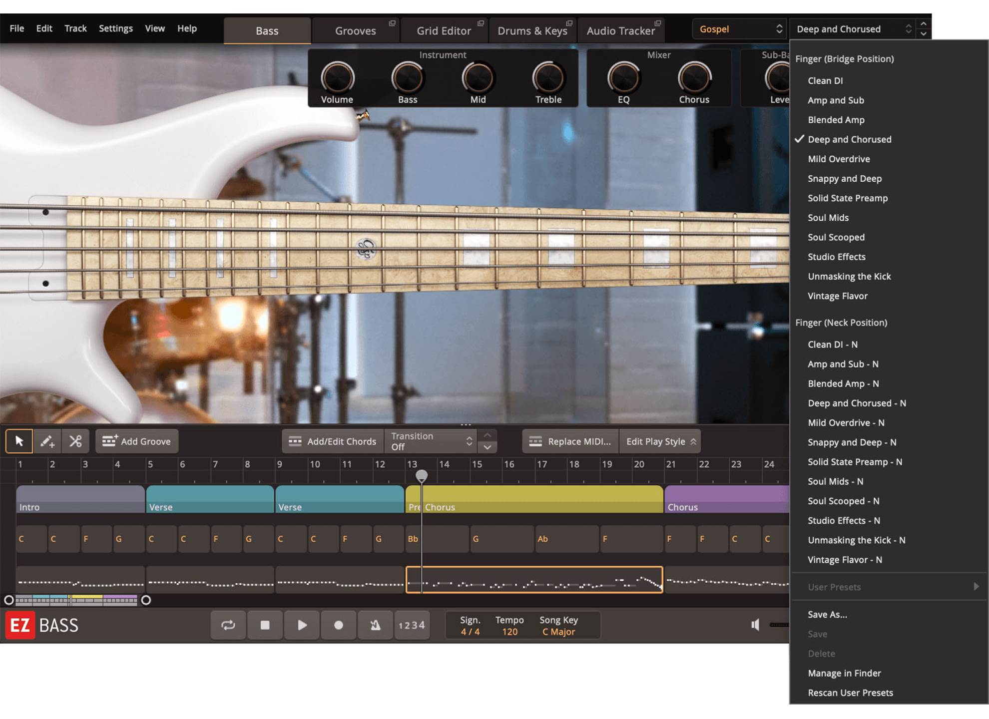 Gospel EBX är en expansion till EZbass som ger dig samplad bas för Gospel-inspirerad musik. Utöver instrumentet får du ett brett urval av presets samt MIDI-filer.