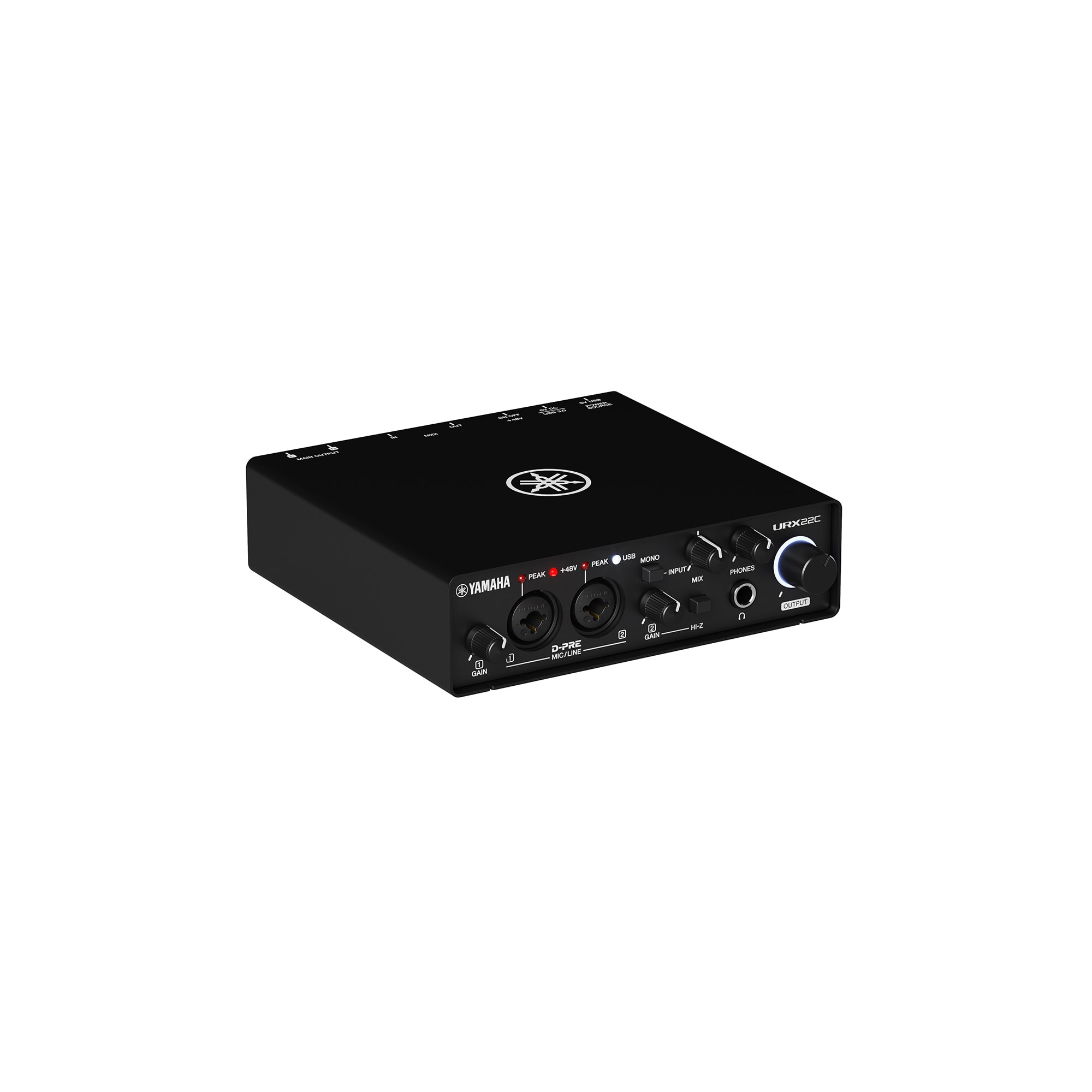 Gränssnittet är utrustat med två D-PRE-mikrofonförförstärkare från Yamaha med +48 V fantommatning och kombinerade XLR/6,3 mm-ingångar. Ingång 2 har Hi-Z-omkopplare för direktanslutning av elgitarr eller bas. Intern DSP möjliggör fördröjningsfri övervakning med effekter och ger tillgång till professionell signalbearbetning via Basic FX Suite.