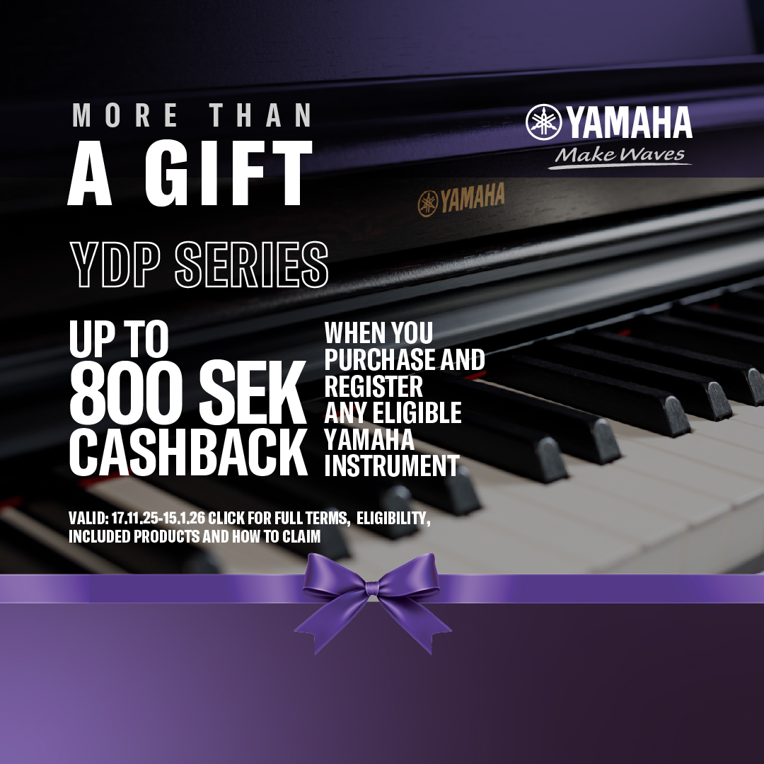 Just nu får du 800 kr Cashback via Yamahas More Than a Gift kampanj. Gå in på länken HÄR för att registrera din produkt och ta del av erbjudandet. Erbjudandet gäller fram till 15 Januari.